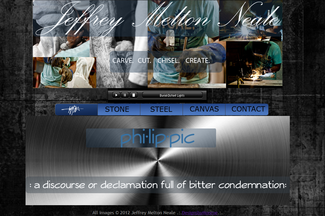 No matter what your artistic preference Jeffrey Neales' art draws you in. His ability to craft stone, and steel into beautiful and truly unique pieces will make you and instant fan. Even his canvas' are unlike anything you have ever seen. Please take some time and browe his portfolio. You won't regret it.